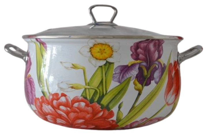 The enameled pan with a glass cover and metal Nr handles. 14928